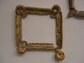 This was the final result of my second sculpture project this semester- I was very inerested in old, ornate picture frames (http://theorangefedora.blogspot.com/search/label/frames) that you see in museums. The frames are so intricate and were all handcarved, yet the maker is never given credit. I left my frames empty to draw attention to the handiwork that goes into this craft, and also to question why, in our society, whatever is put in a frame is instantly elevated to the status of ‘art’. Made from plaster using the blanket-mold process, the multiplicity and apparent mass-production (hah!) of my frames is also in contradiction to the uniqueness of the original handcarved pieces.
